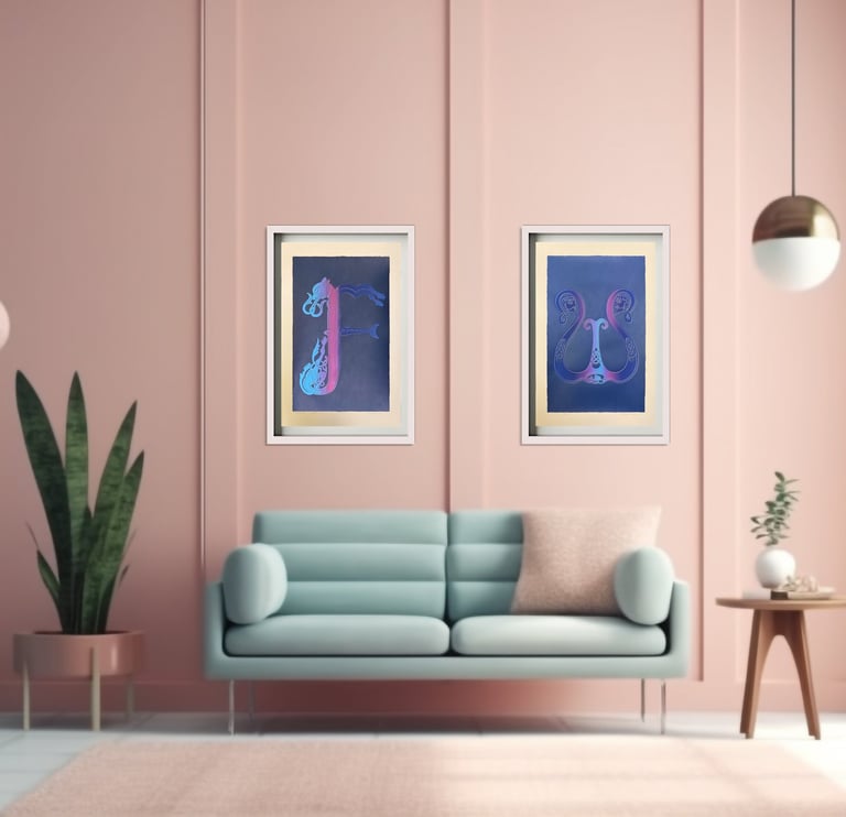 ORIGINAL CELTIC LETTER DESIGNS HAND PRINTED SERIGRAPHS