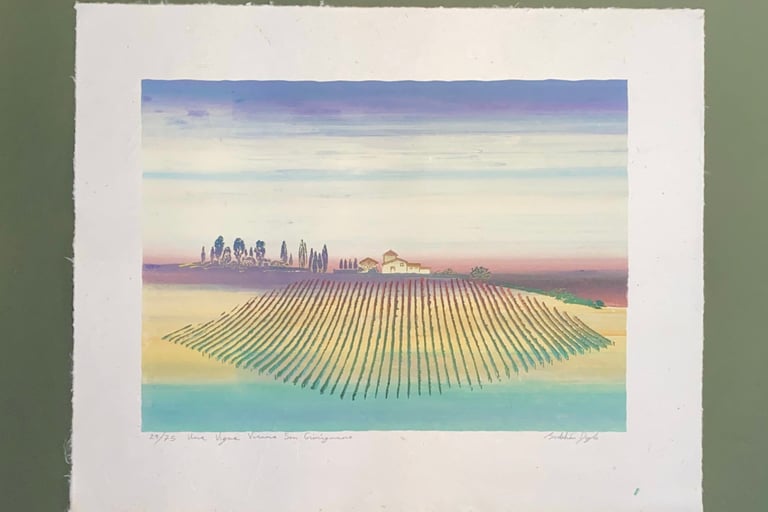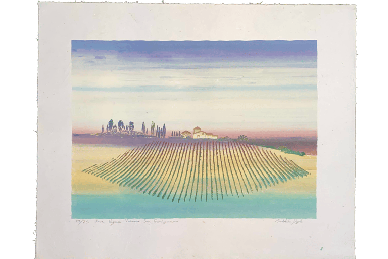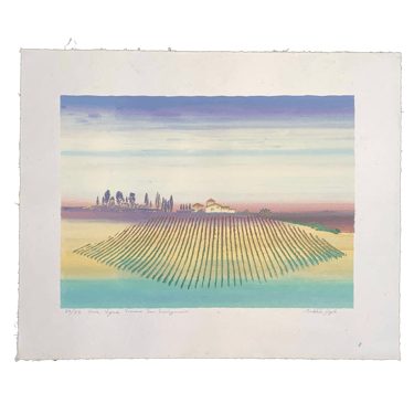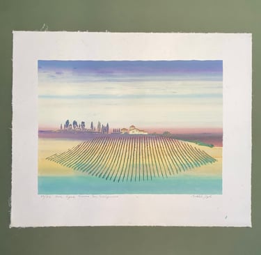 Individually hand silkscreened in my studio in Tuscany. I mix and blend my inks as I work, ensuring that every piece has its own distinct color tones and unique characteristics.